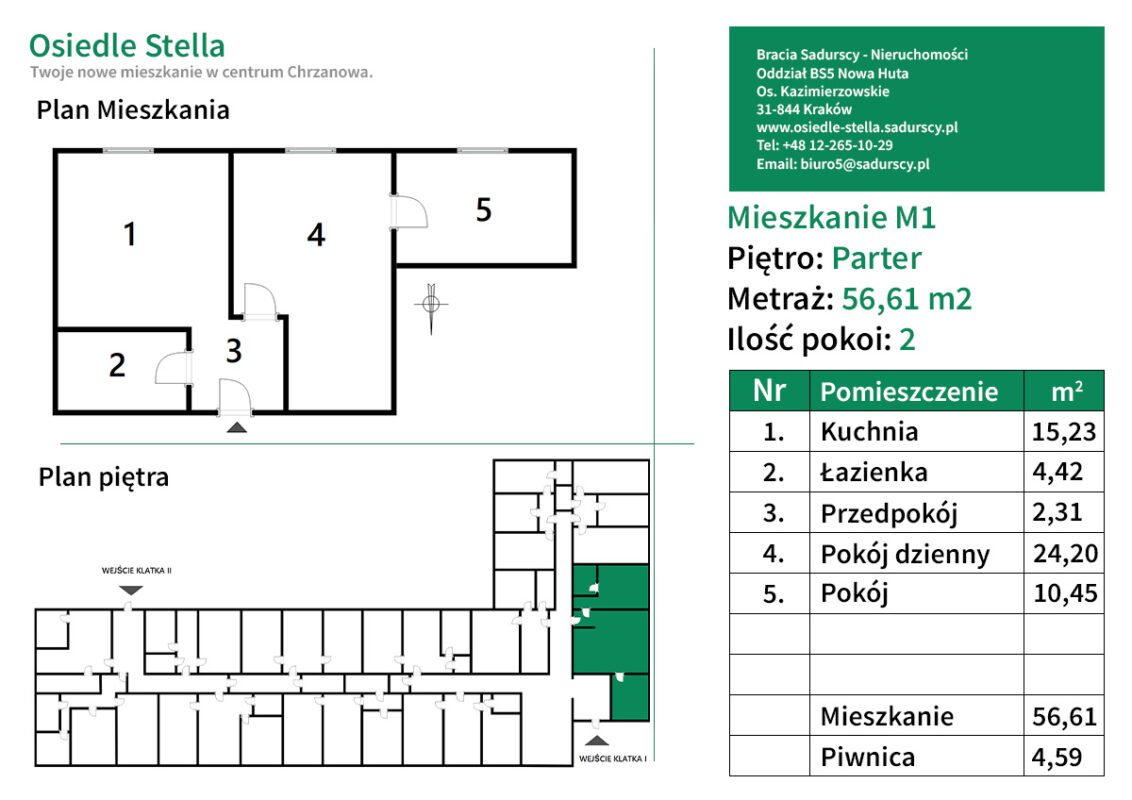 M1 Mieszkanie 2 pokojowe 56,61 m2