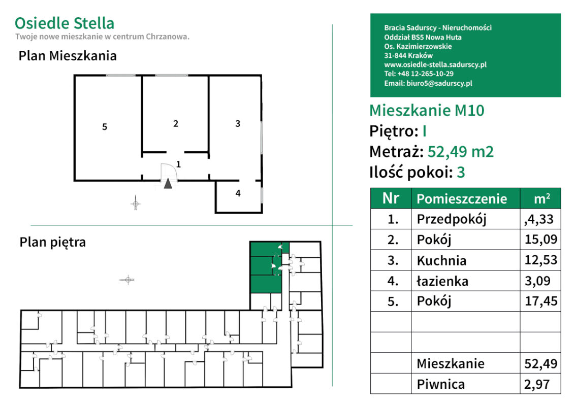 M10 Mieszkanie 3 pokojowe 52,49 m2