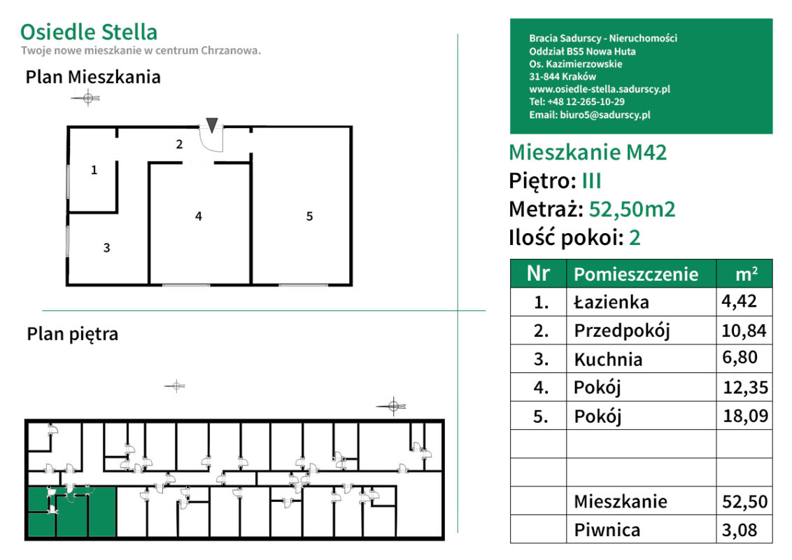 Powierzchnia przynależnej piwnicy: 2,56 m2.