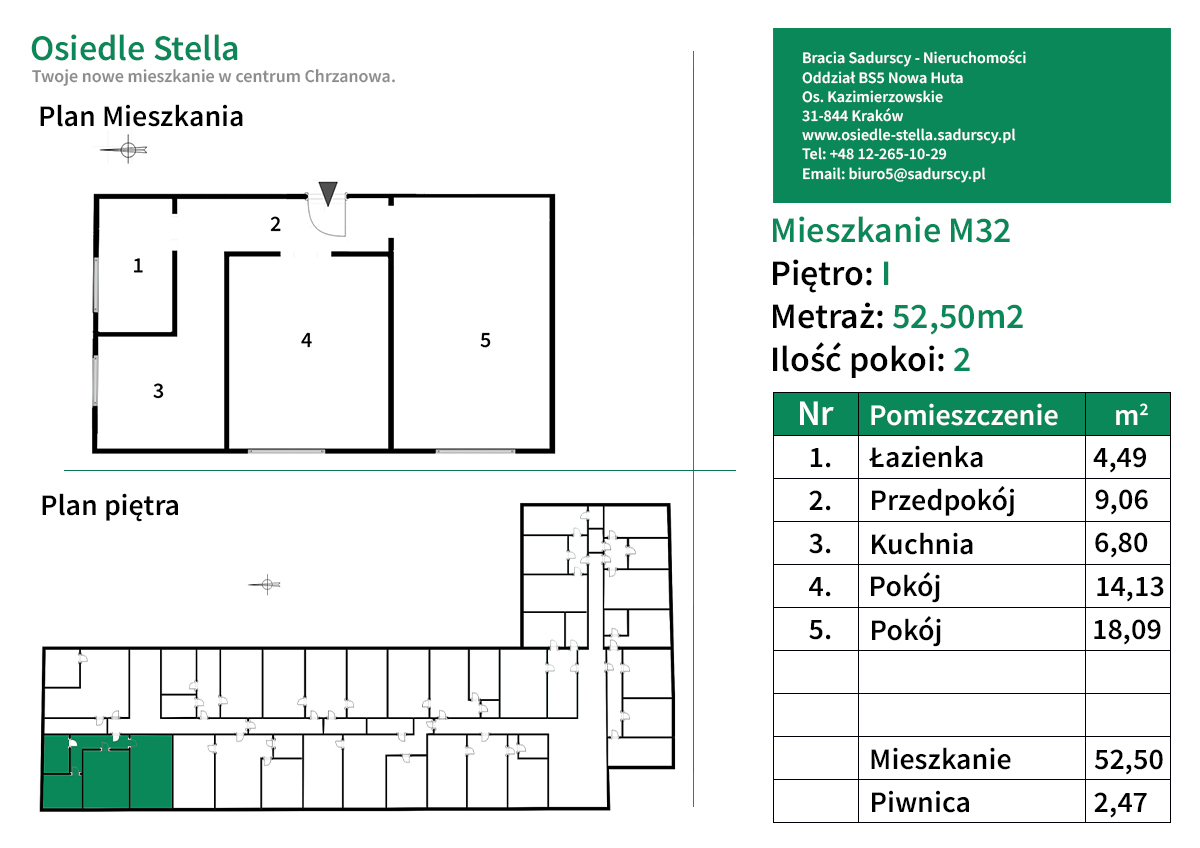 Oferowane przeze mnie mieszkanie ma powierzchnię 52,5 m2 i znajduje się na I piętrze w 3-piętrowym roku.
